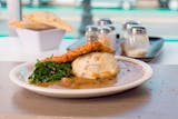 Pounded and breaded pork loin fried super crisp served with a mushroom dijonnaise sauce.